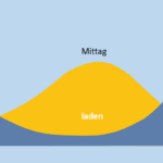Beim Betrachten der Kurve fällt auf, dass der Stromverbrauch steigt, wenn die Sonne noch nicht auf- bzw. schon wieder untergeht. Eure PV-Anlage arbeitet in diesen Zeiten nicht oder schlecht. Effizient arbeitet sie immer dann, wenn keiner zu Hause ist.